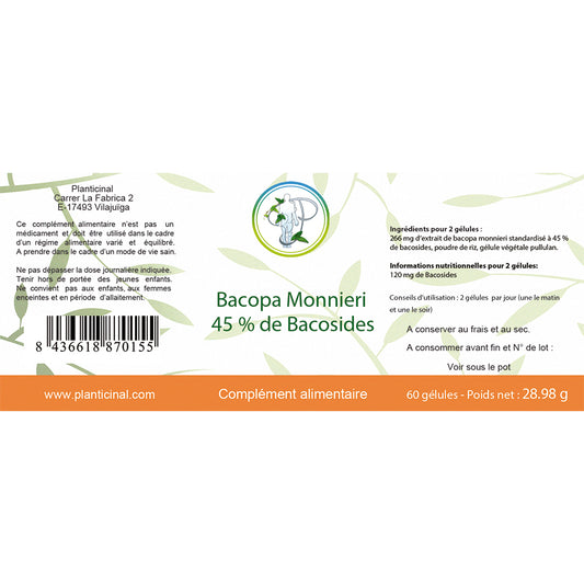 Bacopa Monnieri 45% de Bacosides