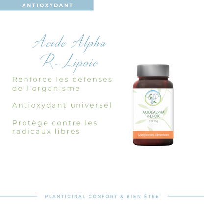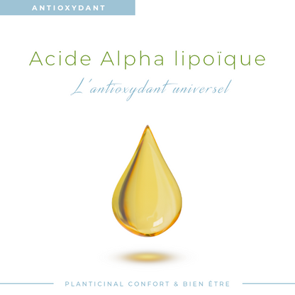 L’acide alpha-lipoïque est un antioxydant puissant naturellement présent dans l'organisme. Il joue un rôle crucial dans la protection contre les dommages causés par les radicaux libres et dans la régénération d'autres antioxydants, comme la vitamine C et la vitamine E.