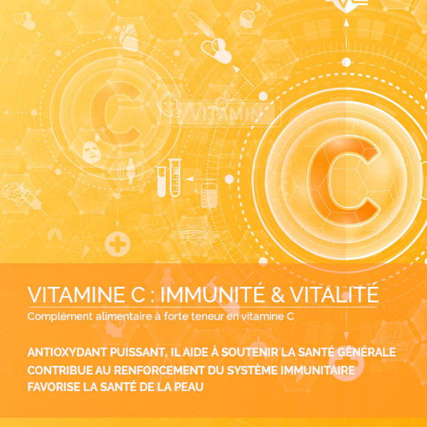 La vitamine C (acide L-ascorbique) agit comme cofacteur enzymatique et antioxydant majeur. Elle intervient dans des voies clés liées aux défenses immunitaires*, au métabolisme énergétique* et à la formation normale du collagène*. Dans cette formule, elle est associée à des phospholipides (phosphatidylcholine) et à une base huileuse, un choix galénique décrit pour protéger l’actif durant le passage digestif (wording descriptif, sans promesse).